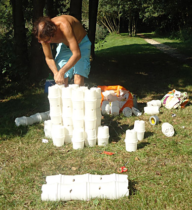 De kikker wordt opgebouwd uit bloempotten