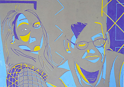 Het portret is een linoleumsnede opgebouwd uit 9 kleuren.